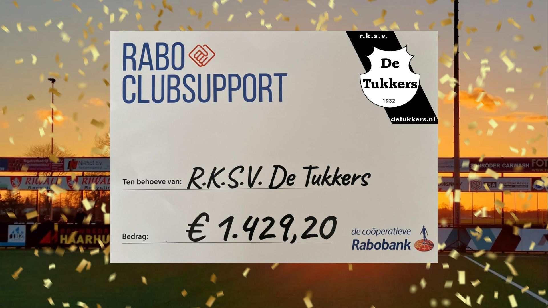 RKSV De Tukkers ontvangt € 1.429,20 via Rabo Clubsupport