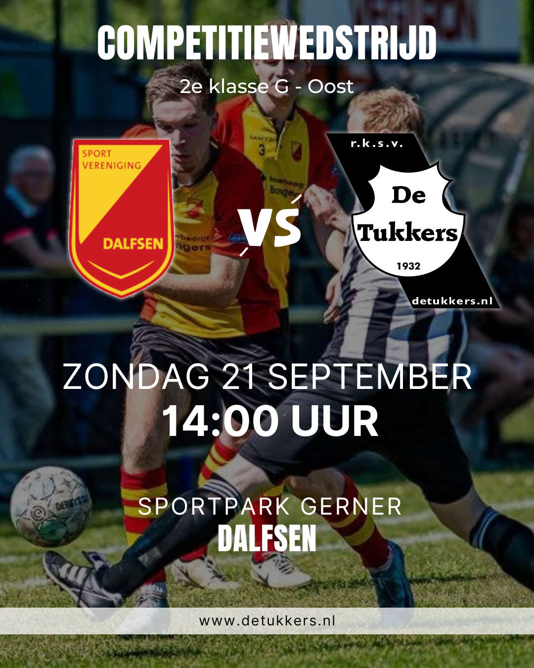 De wedstrijd aanstaande zondag op Sportpark Gerner in Dalfsen begint om 14:00 uur en staat onder leiding van scheidsrechter S. Loois.