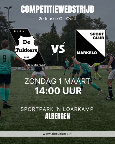 Het elftal is in 2026 nog foutloos. Door overwinningen op Germanicus (5-1) en RSC (4-5) doet Markelo weer helemaal mee in de strijd om de nacompetitieplekken. Afgelopen november troffen Markelo en De Tukkers elkaar in het ‘Dorp van de Vijf Heuvels’. Er werd deze middag niet gescoord en dus moesten beide ploegen genoegen nemen met een punt (0-0).